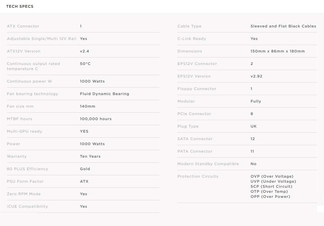 - CORSAIR RM1000i 1000W 80 + Gold Fully Modular ATX 2.0 Power Supply