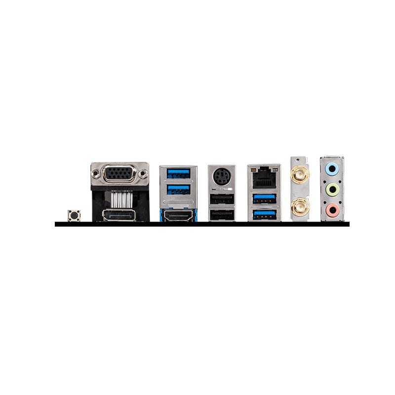 | Back Panel I/O Ports | VGA USB 3.2 Gen 1 5Gbps Type-A Keyboard / Mouse LAN Flash BIOS Button DisplayPort HDMI USB 2.0 USB 3.2 Gen 1 5Gbps Type-A Wi-Fi Antenna connectors 3x Audio jacks |