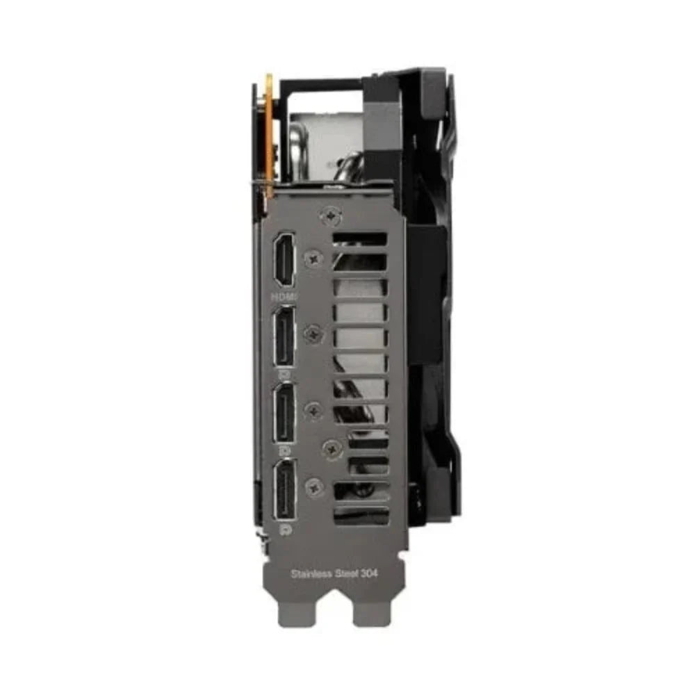 The front-side RGB element can be customized to display a range of aesthetic and functional effects, and also synced with other ASUS components to enable uniform lighting. To fulfill the power demands of the ASUS TUF Gaming Radeon RX 6800 XT OC 16GB AMD Graphic Card, two 8-pin power connectors are present, along with onboard LEDs that light up if PSU PCIe power connectors are not plugged in correctly. Structural pillars of a built-in reinforced metal frame are also visible here and add a literal layer of durability.