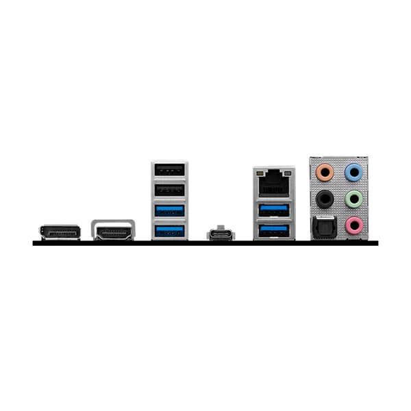 | BACK PANEL PORTS | DisplayPort HDMI™ USB 2.0 USB 3.2 Gen 2x2 20Gbps (Type-C) 2.5G LAN Audio Connectors USB 3.2 Gen 1 5Gbps (Type-A) USB 3.2 Gen 1 5Gbps (Type-A) S/PDIF-OUT |