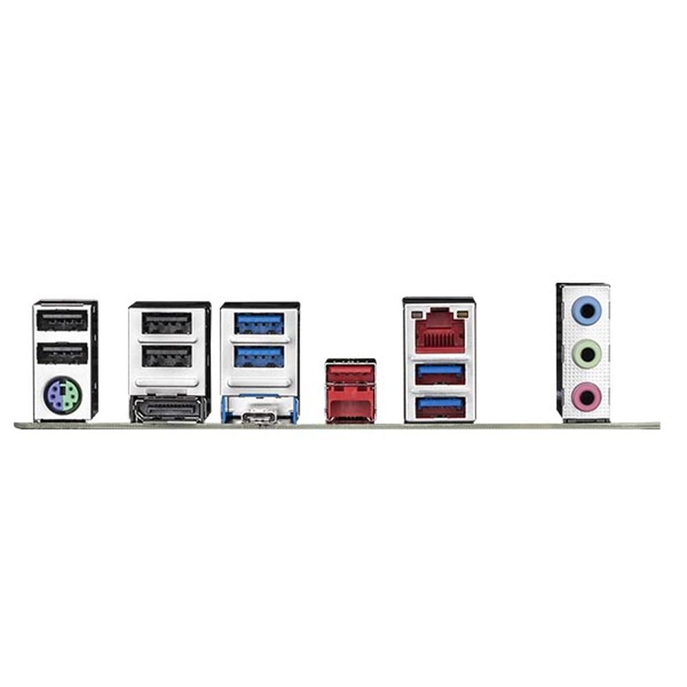 | Back Panel Connectors | 4 x USB 2.0/1.1 ports <br> 1 x PS/2 keyboard/mouse port <br> 1 x DisplayPort (Note) <br> 4 x USB 3.2 Gen 1 ports <br> 1 x USB4® USB Type-C® port (DisplayPort (Note)) <br> 1 x USB 3.2 Gen 2 Type-A port (red) <br> 1 x RJ-45 port <br> 3 x audio jacks (Note: Actual support may vary by CPU) |