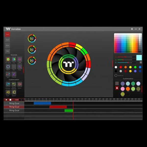 THERMALTAKE Riing Quad 12 radiator fan is designed with 4 independent LED rings totaling 54 LEDs and 16.8 million color combinations. The fan is virtually inaudible when in operation and supports our NeonMaker light editing software and TT RGB PLUS Ecosystem.