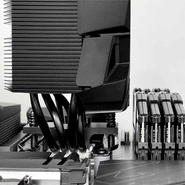 Optimised performance meets modern, black design and whisper-quiet operation. With its four offset heat pipes, the single-tower CPU cooler enables fast heat transfer into the heat sink, where it can be efficiently dissipated by means of a 120 mm fan