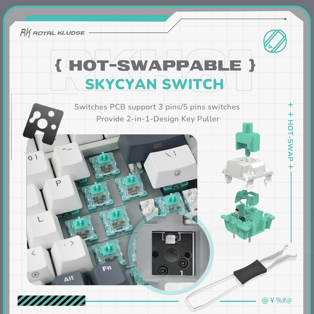 This hot swappable mechanical keyboard has the same force at both the beginning and end of each stroke, as silent as red switch, but more tight feeling, that you can enjoy more accurate, cleaner, smoother touch. Clean sound brings you more comfort like the sprinkle. The ideal one to fit home, shared workspace and light gaming.