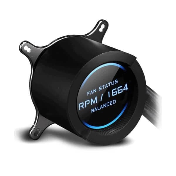 Through the AORUS Engine, users can select CPU model name/clock rates/temps/fan RPM/pump RPM to display on their LCD, giving them full control over the status of each metric. Text and image files can be displayed on the LCD. Fans and pump RPM come with the silent fan function.