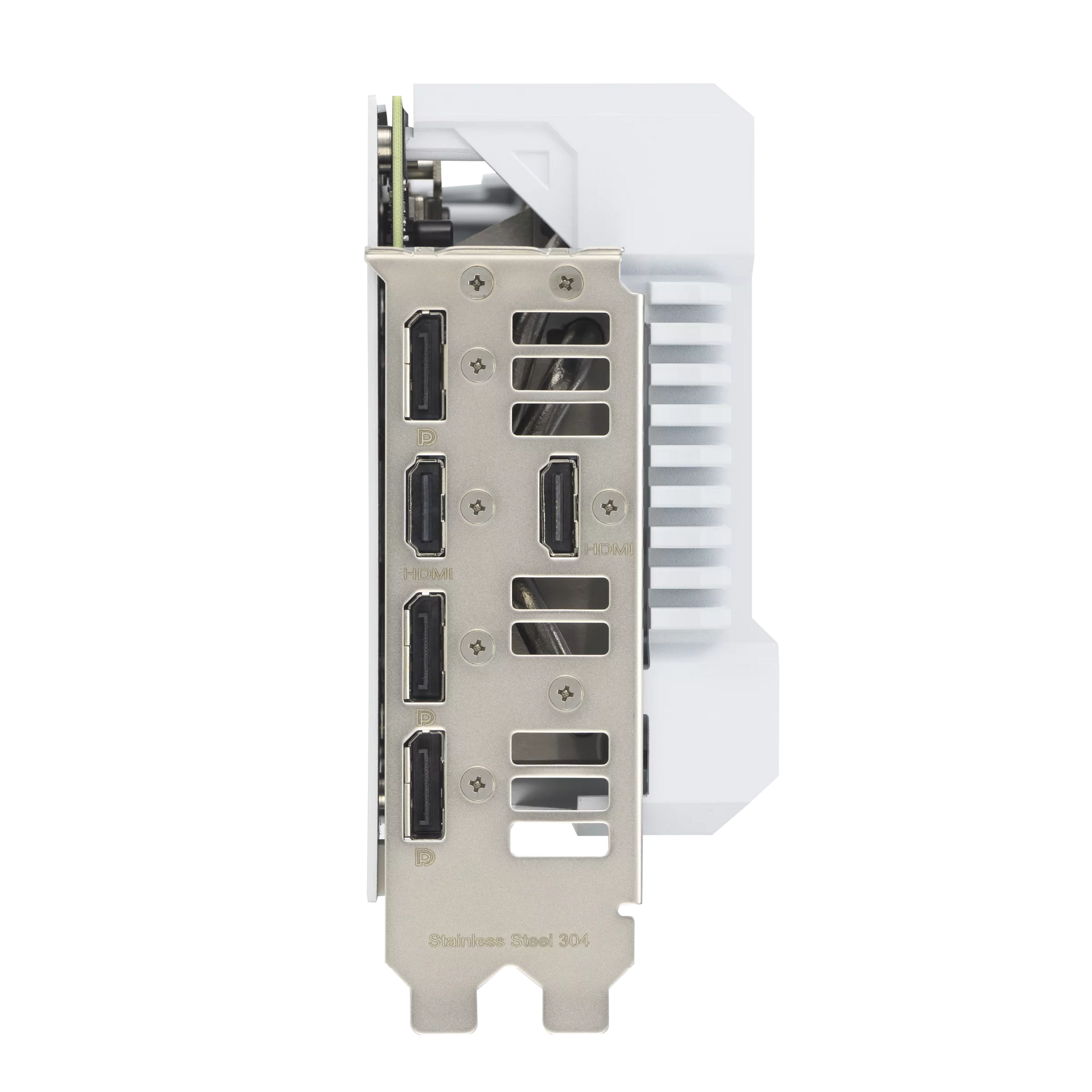A generously oversized heatsink combo efficiently soak up heat from the GeForce RTX 4070 Ti SUPER BTF White Edition GPU so that it can be whisked away by the three Axial-tech fans.