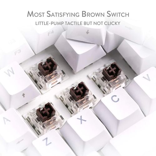 Tactile brown switches provide a soft bump, but no click, unlike blue switches for quiet use. Hot-swappable with other Redragon switches. Made to last with switches rated for 50 million keypresses.