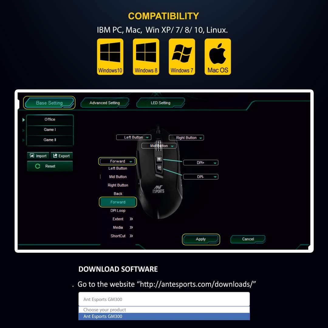 Perform to shine and Build to last – This is the motto with which the Ant Esports GM300 gaming mouse is made. Equipped with a highly accurate and fast optical sensor that ranges from 1200 to 4800 DPI and offers four variable polling rates of up to 1000Hz, this mouse is the perfect weapon for fast-paced battles that demand high speed with utmost accuracy. A side fin adds to the ergonomically perfect design of the mouse giving extra thumb support to people who like to indulge in long gaming sessions or want a mouse for gaming and editing alike. With 5 RGB Backlit areas and the go DPI switch button the GM300 Ant Esports Mouse is made for every game and every play style possible. All the RGB illuminated areas along with the 7 buttons are programmable and support macro editing thanks to the provided utility software so that each mouse is custom-made to your taste and requirements.