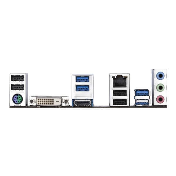 1 x PS/2 keyboard/mouse port 1 x DVI-D port 1 x HDMI port 4 x USB 3.2 Gen 1 ports 4 x USB 2.0/1.1 ports 1 x RJ-45 port 3 x audio jacks |