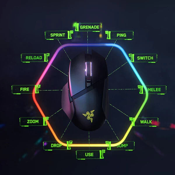 - RAZER Basilisk V3 Pro Wireless Ergonomic Gaming Mouse ( RZ01-04620100-R3A1 ) ( 30000DPI / 11 Macro Buttom ) ( Black )