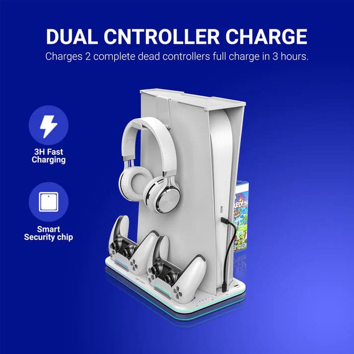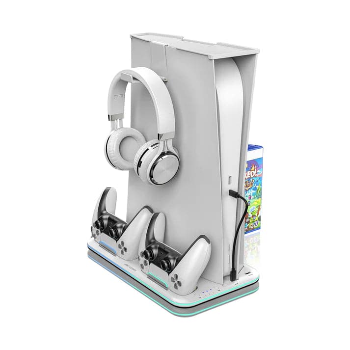 Equipped with a high speed fan that can be turned on and off as per need, the Dock 5 will keep the Sony Play Station 5 cool even under extreme loads so you can play more and worry less. A dedicated dust cover and headset stand not only keeps the PS5 clean from the top but also helps you store away all your gaming accessories in one place.