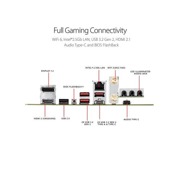 - High-performance Gaming Networking: Onboard WiFi 6 (802.11ax), Bluetooth V5.1 and 2.5 Gb LAN with ASUS LANGuard