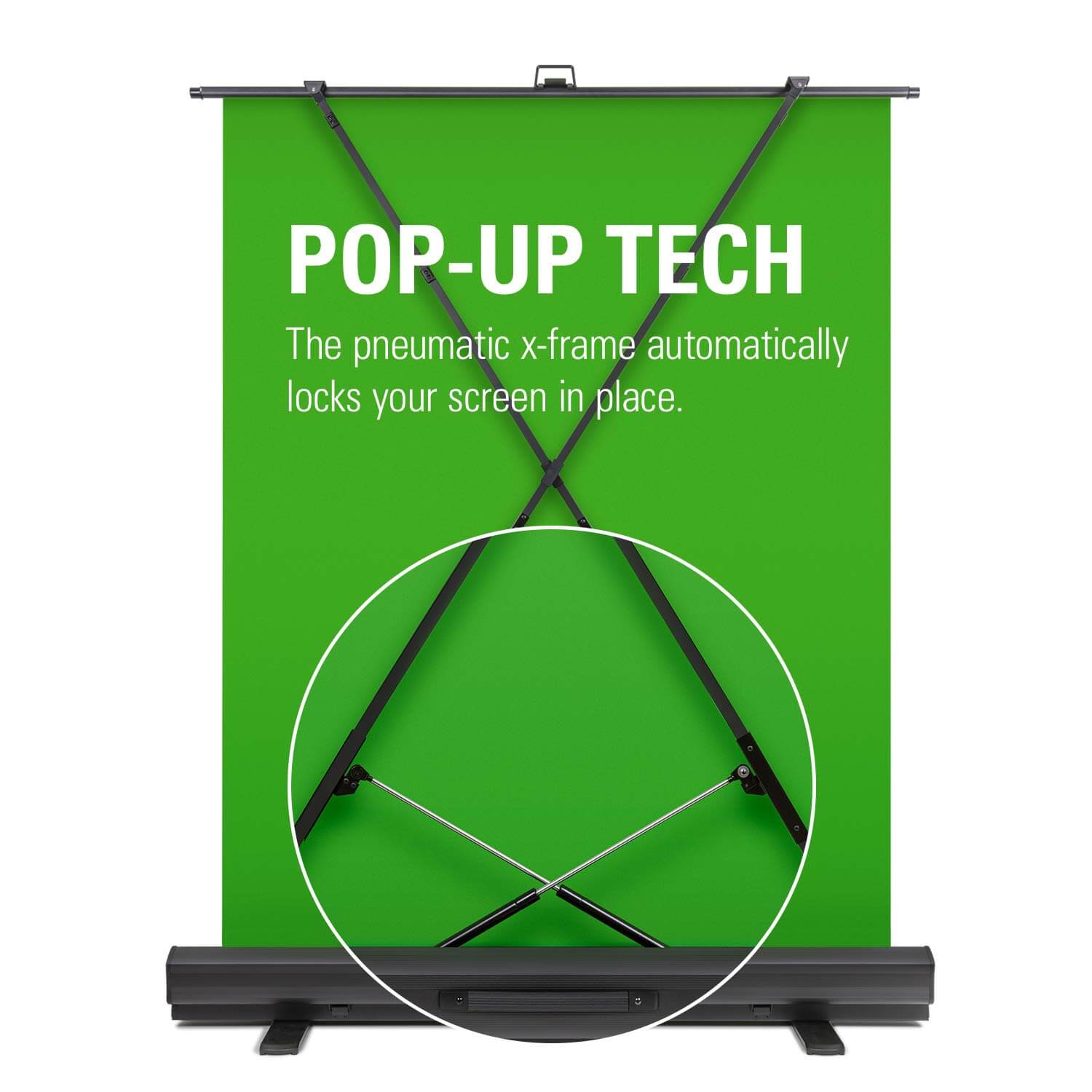 Simply flip open the aluminum case, lift the handle to a suitable height, and let the pneumatic x-frame automatically lock your canvas in place. That’s it.