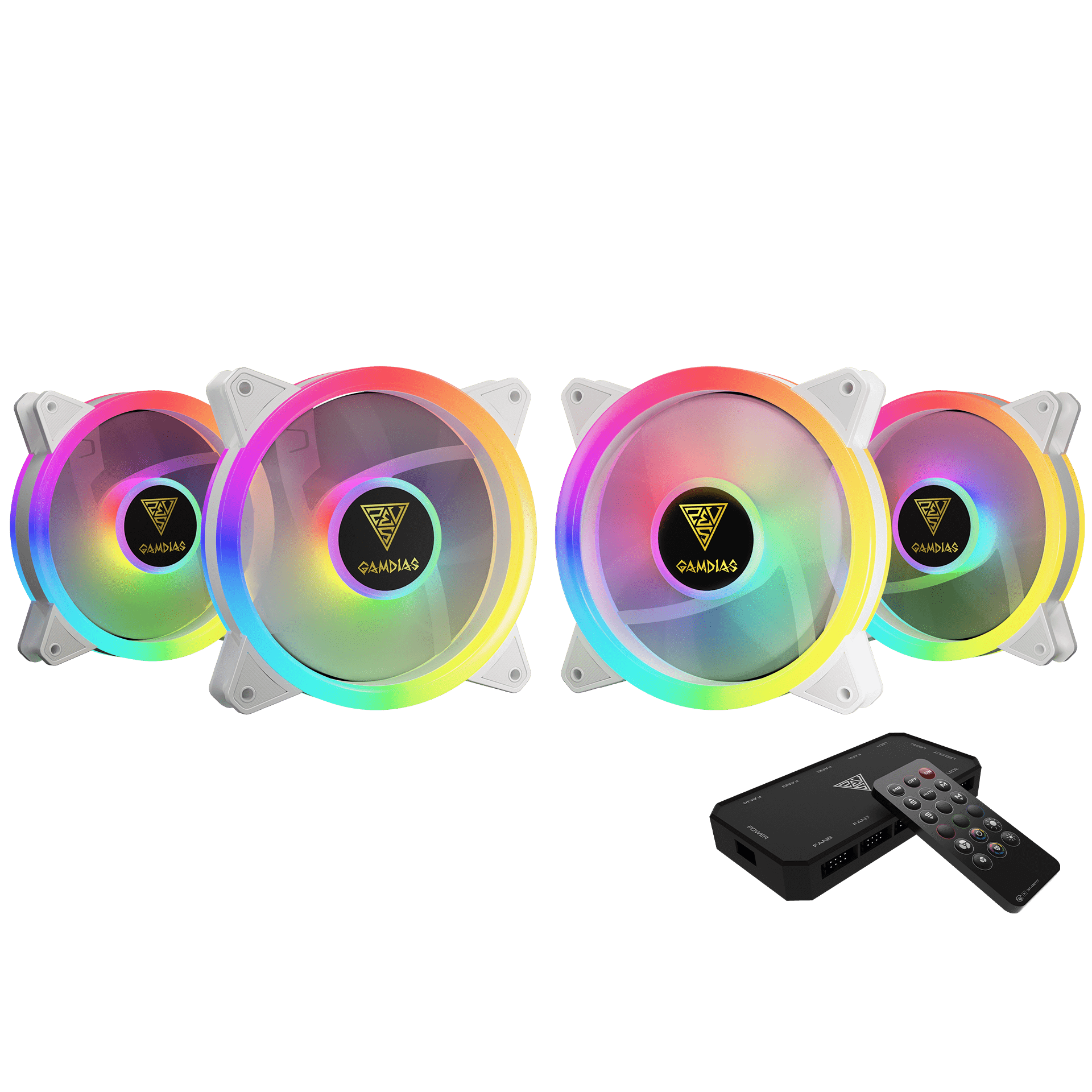 GAMDIAS AEOLUS M2-1204R WH is a 4-pack combo of the white, silent, and powerful AEOLUS M2 ARGB fan. The product comes with an auxiliary wireless remote controller and AEOLUS Box with a simple plug-in connection to enrich your RGB experience.