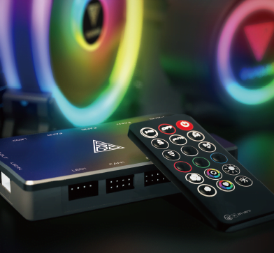 With the magnetic AEOLUS box, you can add up to 8 fans & 2 additional LED strips and easily sync and customize your fan speed and lighting.