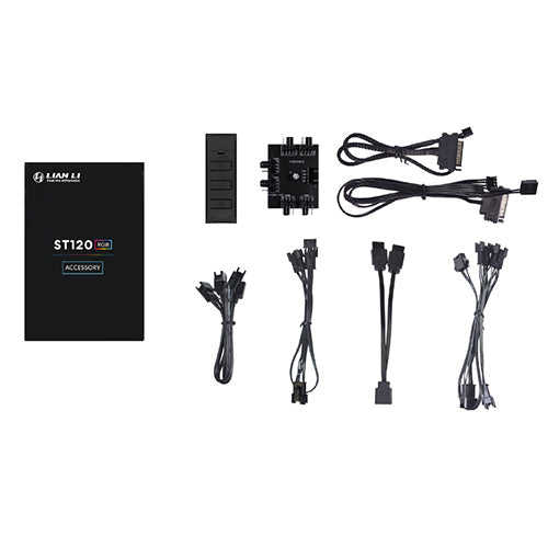 Available separately from the GALAHAD AIO, LIAN LI ST120 120mm ARGB Cabinet Fan (Black) (Triple Pack) is a PWM fan which operate between 800 and 1900 RPM, and deliver a maximum airflow of 69.17 CFM and air pressure of 2.6 mmH20, making them ideal fans for any AIOs capable of hosting 120mm fans. Integrated the fluid dynamic bearing, and extra magnetic support, the fan runs in silence and low vibrant. Equipped with ARGB LEDs that can be synchronized with the motherboard lighting software or managed via the included controller.