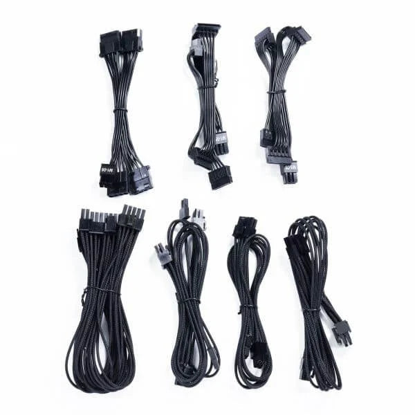 | CONNECTORS | 1x 24 / 20-Pin motherboard connector (300mm) x 1pcs 2 x 8 / 4-Pin CPU / ATX 12V connector (450mm-70mm) x 1 pcs 1 x 8 / 6+2 Pin PCIe connector (400mm) x 1pcs 2 x 8 / 6+2 Pin PCIe connector (400mm-120mm) x 1pcs 4 x SATA connector (120mm-120mm-120mm-120mm) x 2pcs 4 x 4-Pin Peripheral connector (120mm-120mm-120mm-120mm) x 1pcs |