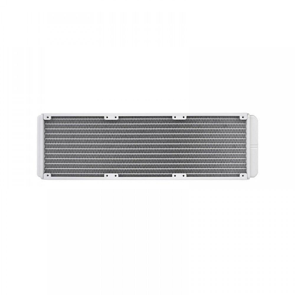 THERMALTAKE TH360 ARGB Sync Snow Edition is an all-in-one liquid cooler which includes three 120mm powerful high static pressure fans, and a high performance radiator along with a water block, 16.8M RGB color lumination with pre-set lighting modes via the smart fan controller, or synchronize with motherboard RGB software for stunning RGB colors.